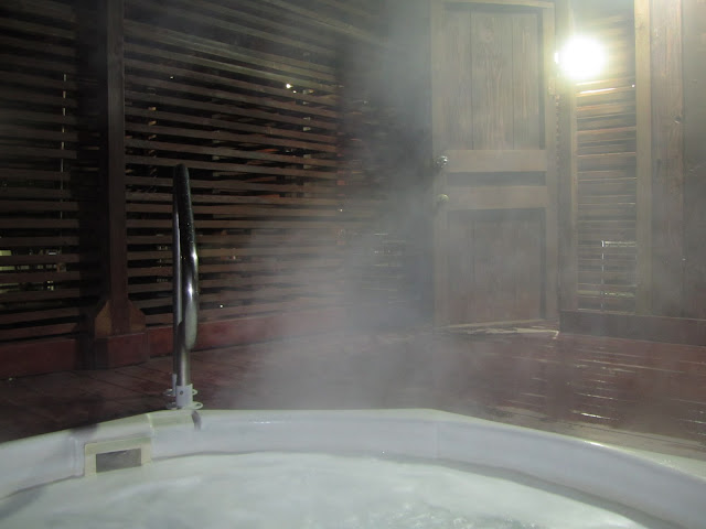 After a good, long soak, I headed back to my room as the rain began to fall. I made a deal with myself to ride in
